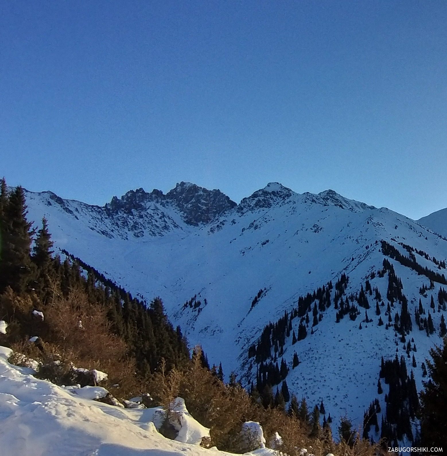 “вид в долину Иссыкбаш по центру Иссыкбаш правее пик Акбулак”