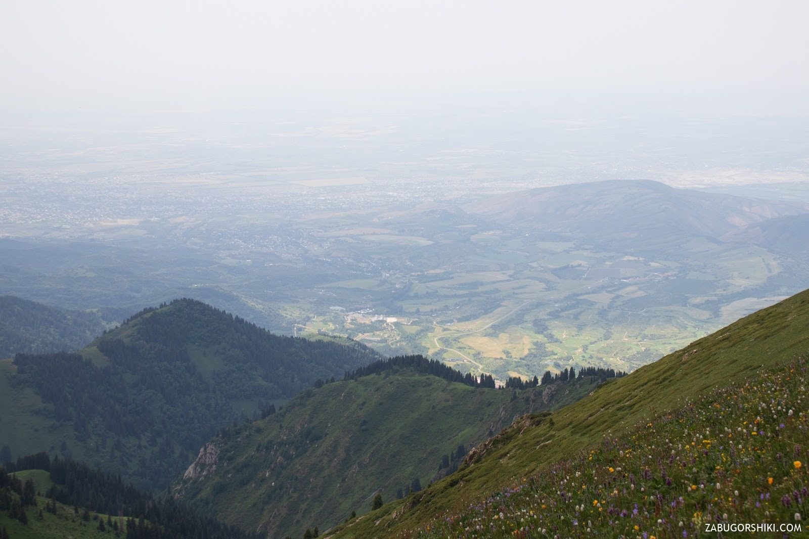 “вид в долину Иссыкбаш по центру Иссыкбаш правее пик Акбулак”
