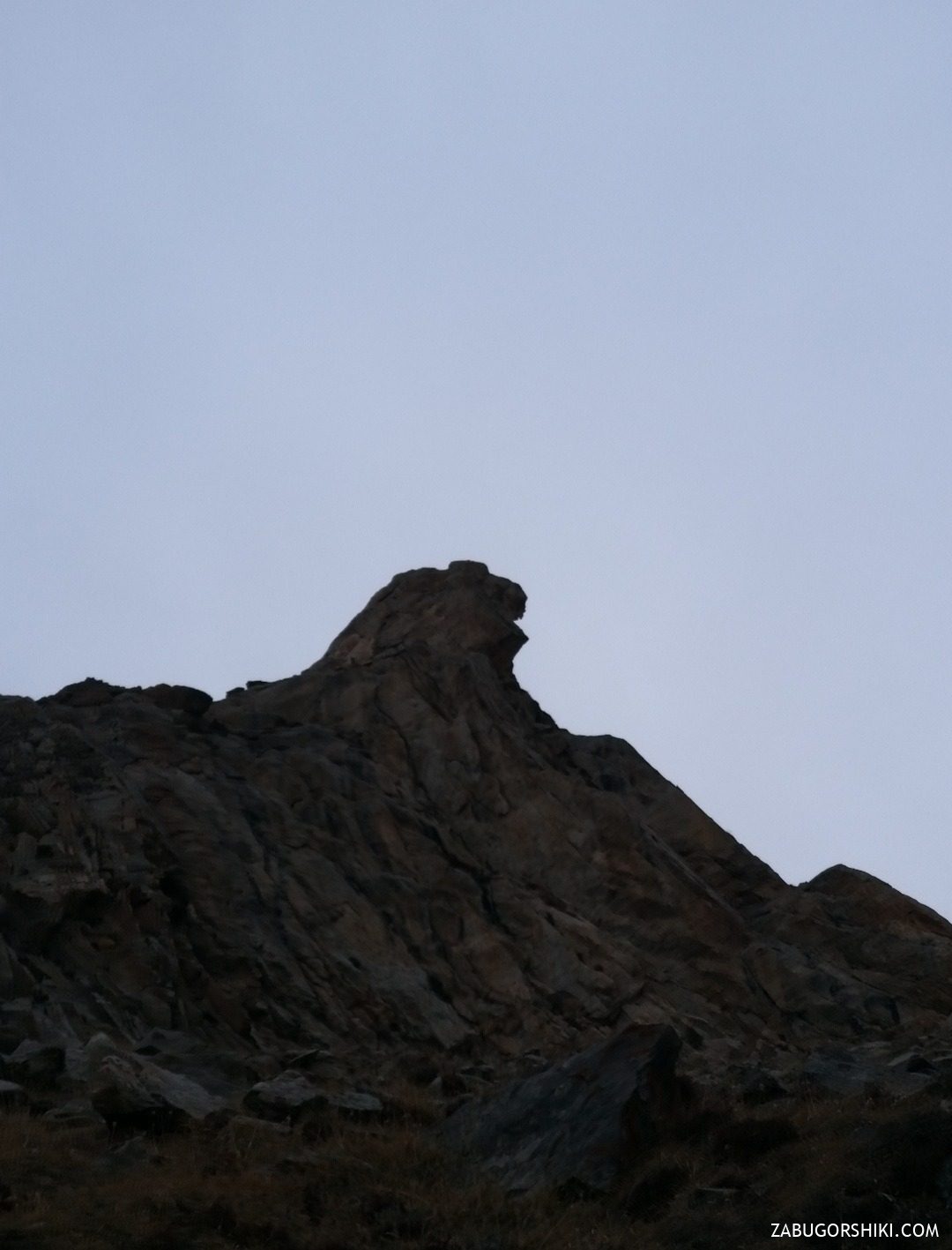 По пути я строил турики — маленькие пирамидки из камней. В одном из кулуаров заметил забавную скалу, похожую на дракончика.