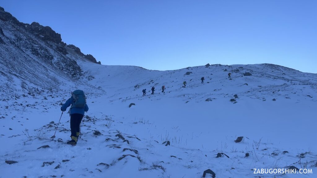 Раннее утро стало идеальным временем для выхода из лагеря. Погода нас радовала — ясное небо и отличная видимость создавали идеальные условия для восхождения.