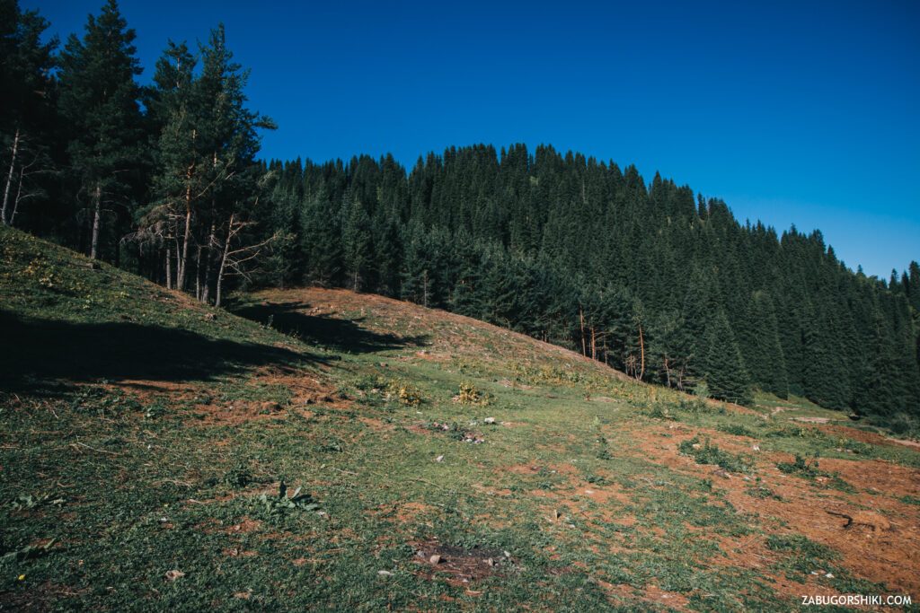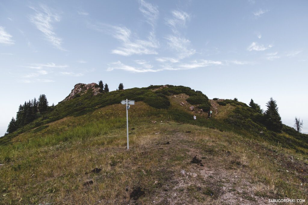 Тропа до Лесного перевала вела нас через «море» душицы и горной мяты, петляла вдоль ручья, заставляла идти под палящим солнцем по жаркому плато и взбираться по узкой тропе, через заросли можжевельника, вдоль склона к очередному указателю.