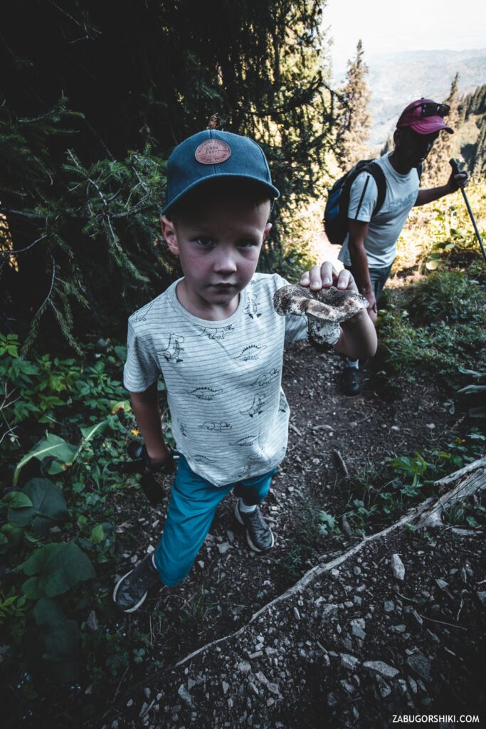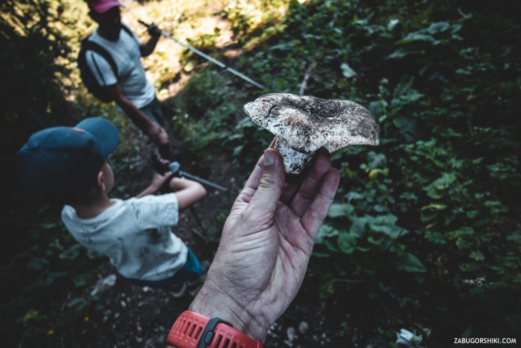 Теперь идти полегче…НЕ ТУТ ТО БЫЛО. Через 10 минут начался «непростой» (нельзя сквернословить здесь) подъем через хвойный лес. Земля под ногами рыхлая, подъем временами как на гору Мордор. Но и приятностей хватает! Жаркое солнце скрыто кронами высоких и стройных елей, за подстилкой (опавшая листва/хвоя и прочее, а не то, что некоторые могли подумать) спрятались грибы. Плохо спрятались, мы вас нашли!!!