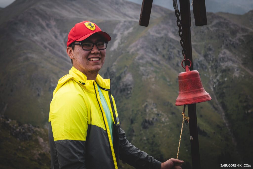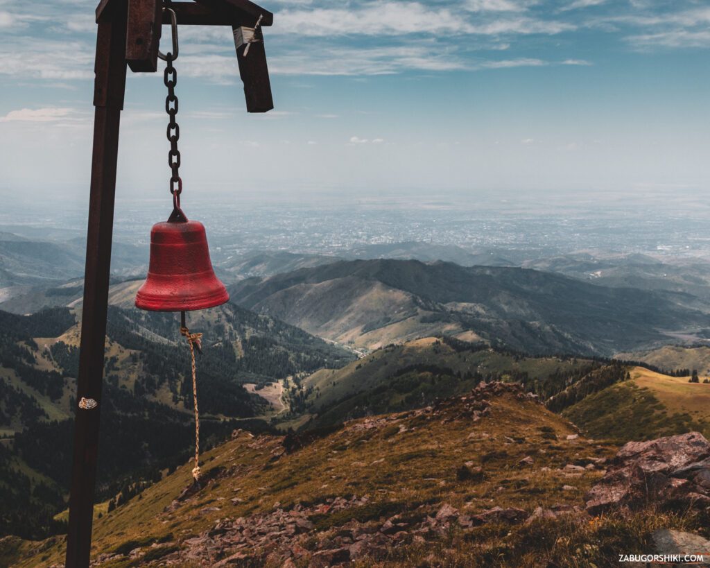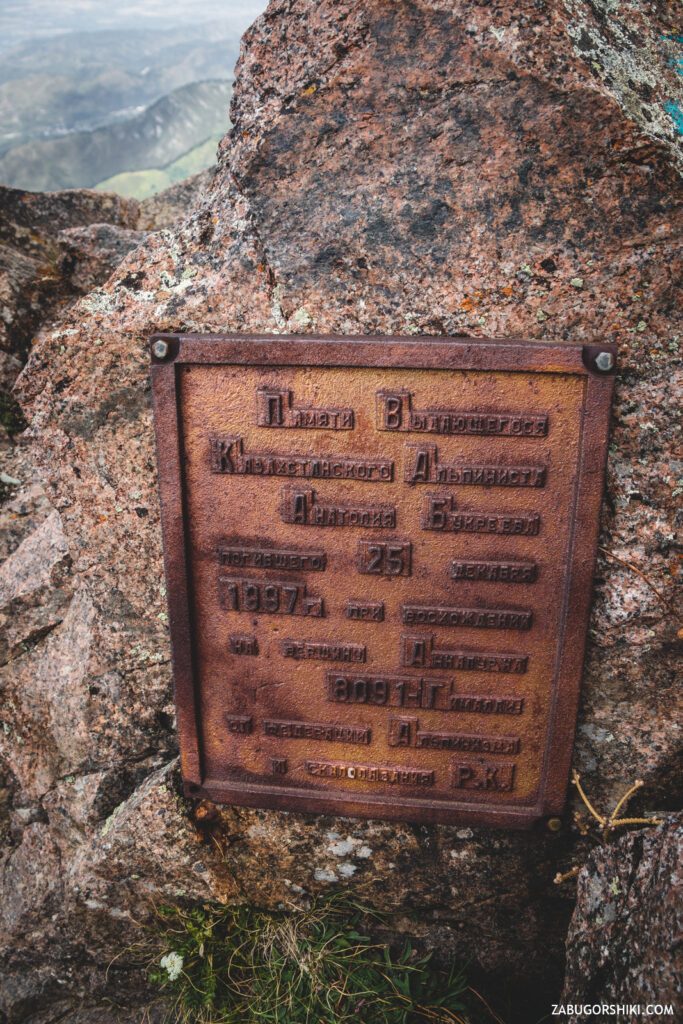 На пике установлены колокол, позвонив в него можно почтить память казахстанскому «Снежному Барсу», таблички, посвященные непревзойденному и молитва.