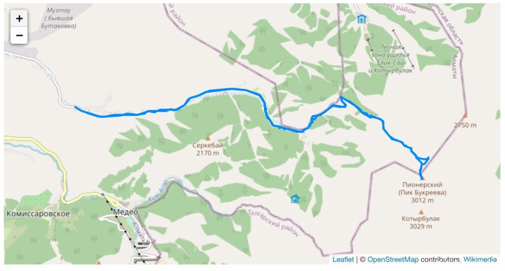 🧭 Схема маршрута до пика Букреева и GPX/GPS