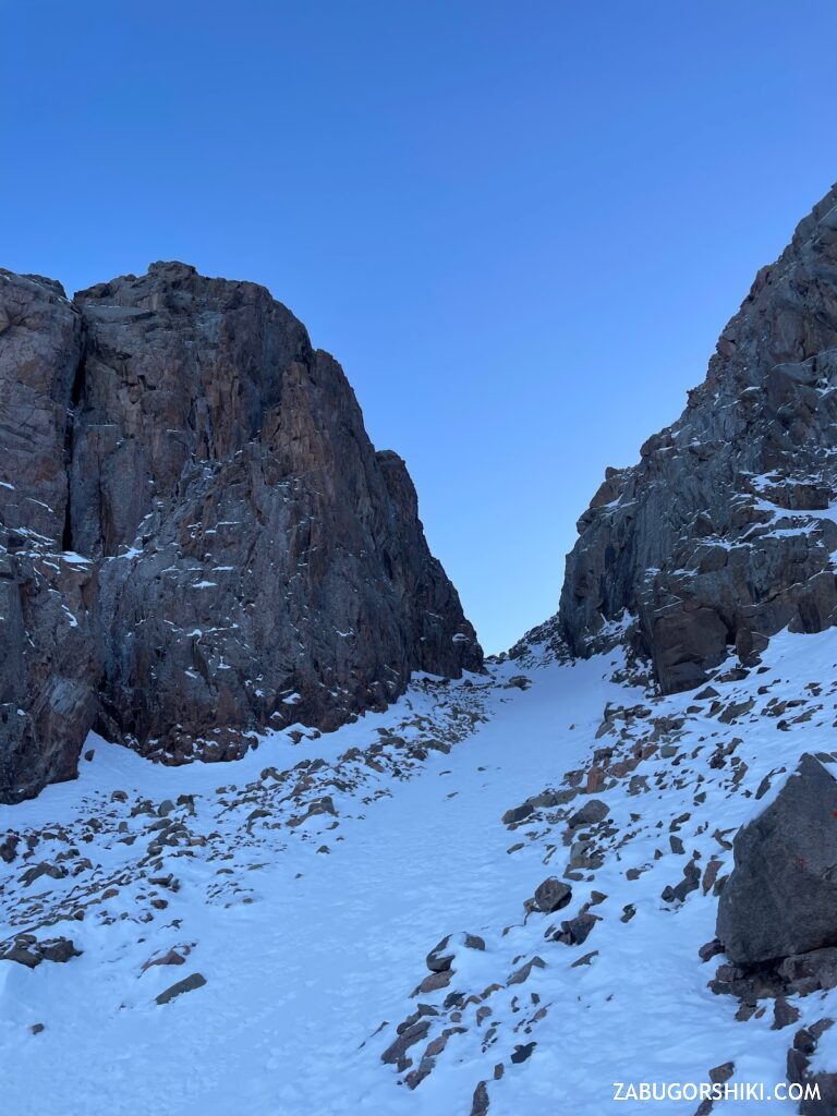 Зайдя в нужный кулуар, пришлось быть предельно внимательными — камни то и дело норовили скатиться вниз, целясь прямо в каски участников. 😁