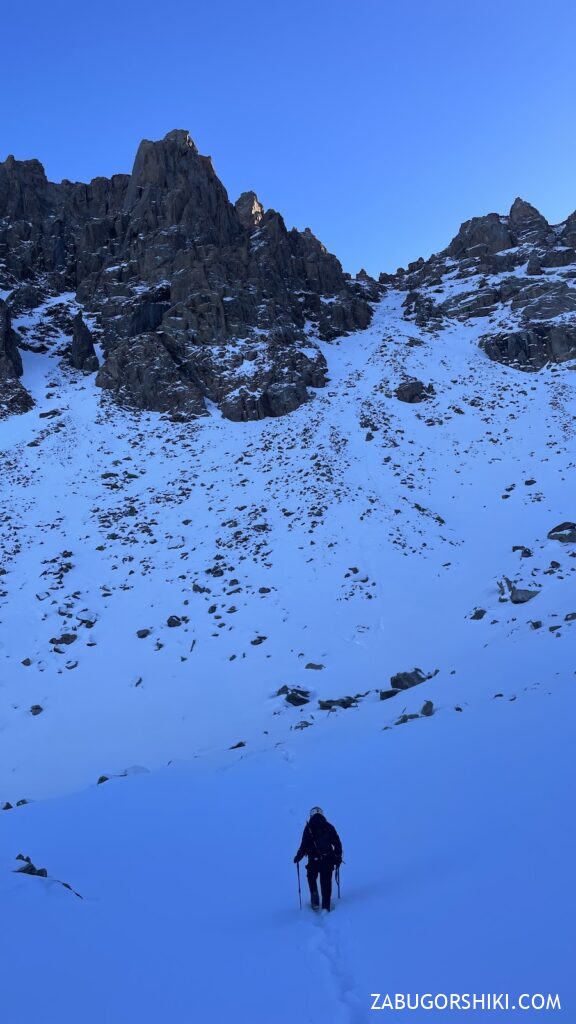 Спустя примерно 30 минут после выхода мы подошли к началу нашего маршрута на пик Чкалова.