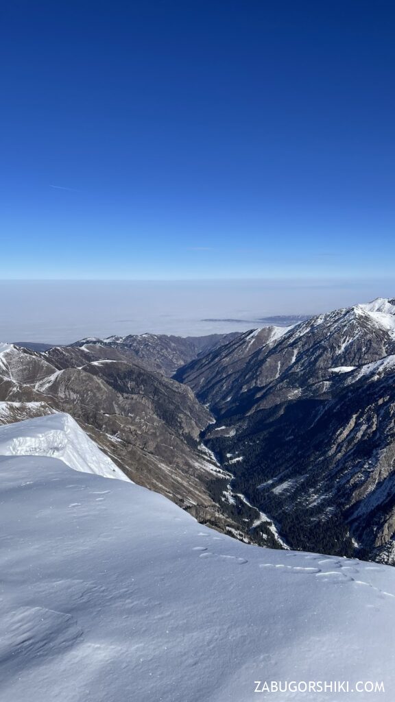 Насладившись панорамой около 10 минут, мы начали спуск. По пути спустили несколько склонов, контролируя возможные лавины.
