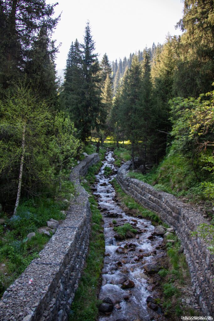 Примерно в 3-х километрах от главной парковки Медео такая природа и вам встретится родник с чистой водой.