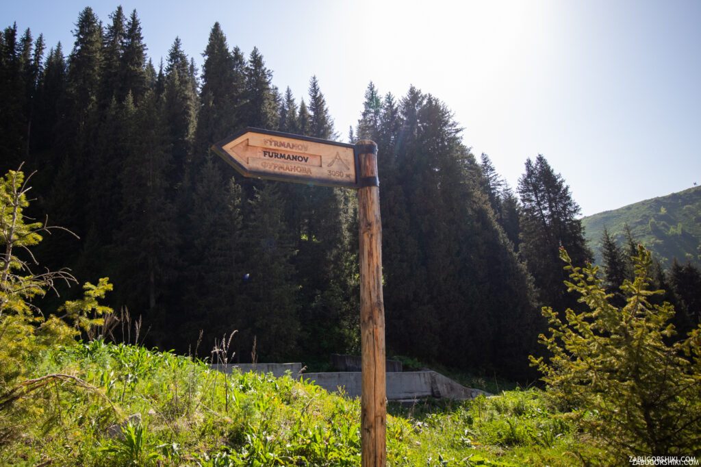 Смотрите внимательно. После того, как пересечете мост второй раз чуть выше по тропе будет этот указатель. Поворачивайте в сторону «седловины».