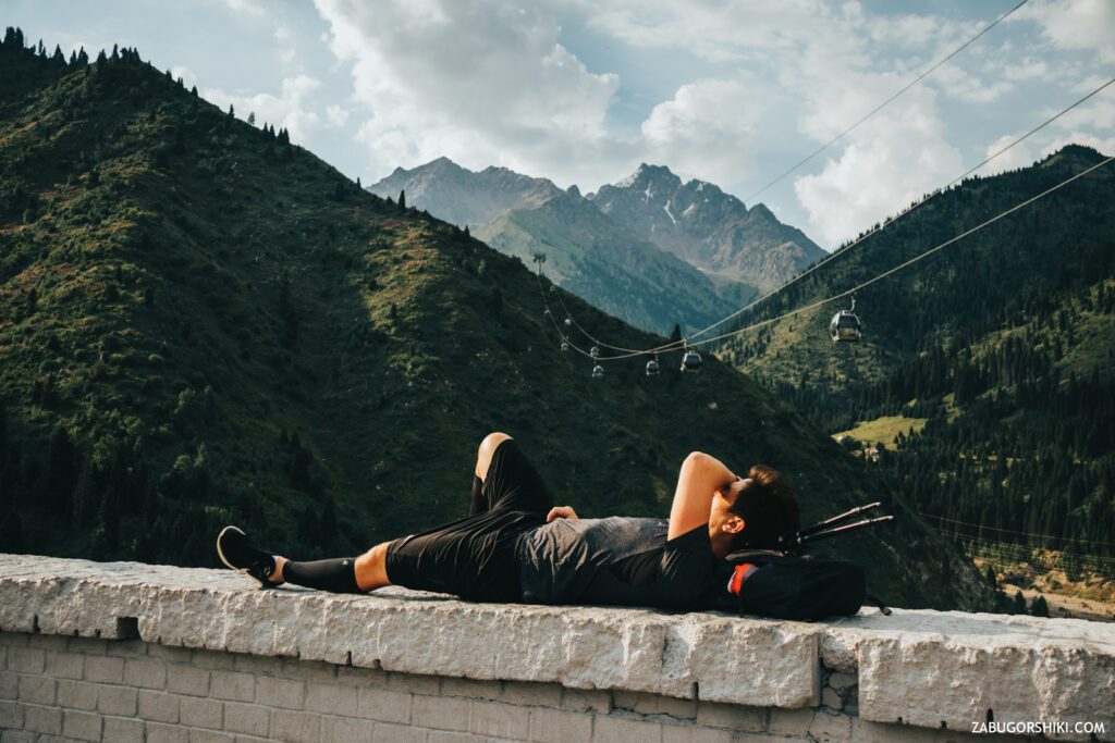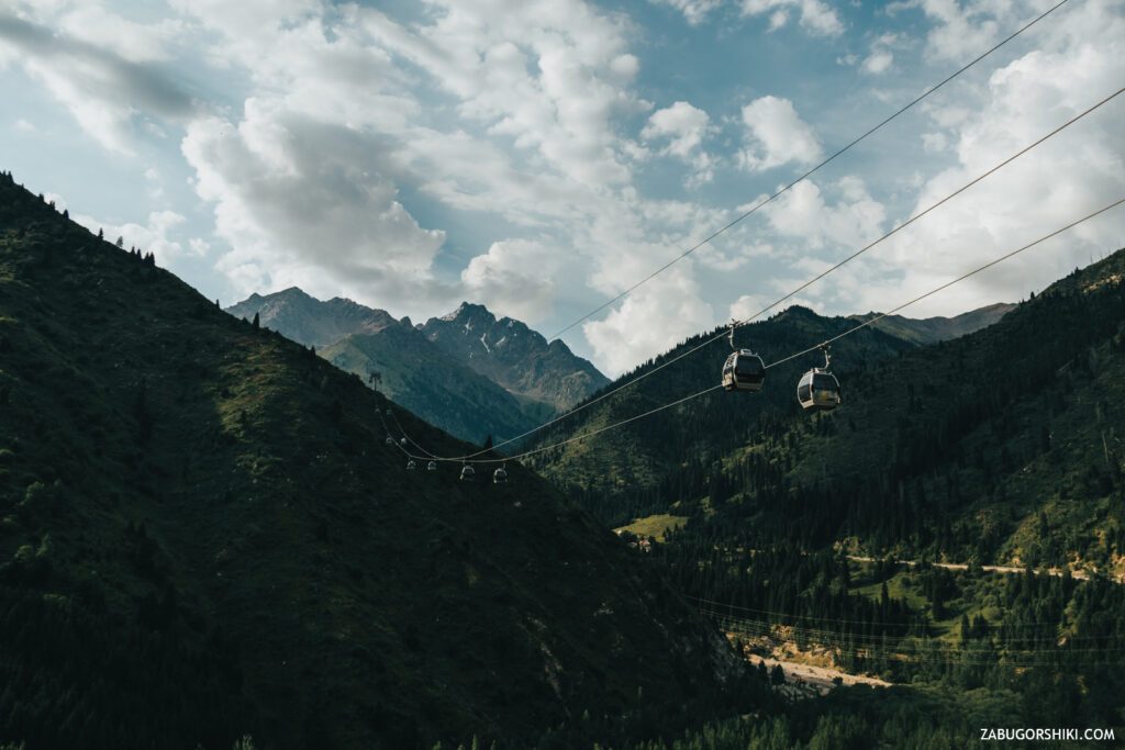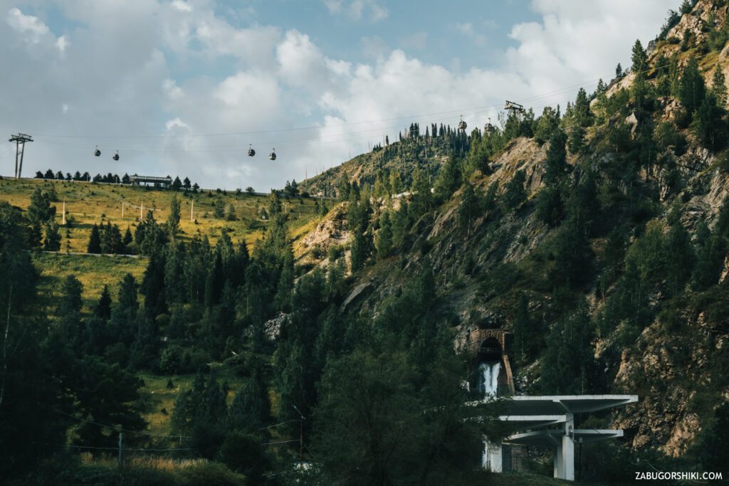 Преодолев эти «150 метров высоты», восхищаемся кругозором и гордимся собой! Открывается вид на сам каток «Медео», город… «Кабинки» канатной дорожки проносятся над головами, унося туристов к подножью Чимбулака. Здесь можно встретить как «искателей новой аватарки для инстаграмма» и заядлых спортсменов, так и тех, кто ищет приключения с палатками на рюкзаках. Ходят и стар и млад. Молодцы!