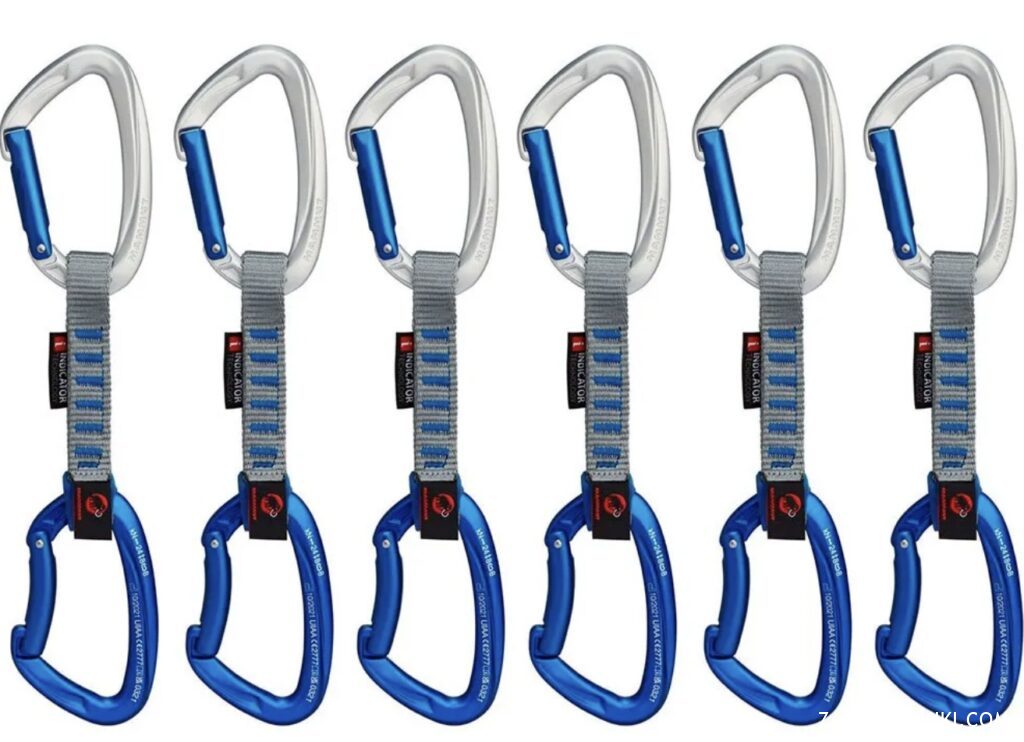 - Стропа — соединяет карабины и может быть разной длины (обычно от 10 до 25 см, но есть и более длинные варианты для сложных маршрутов). Стропа изготавливается из прочных материалов, таких как нейлон, полиэстер или дюралайн, которые выдерживают большие нагрузки.