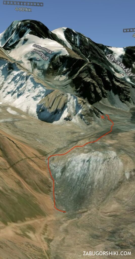 - От стоянки идет относительно четкая тропа в сторону ледника Орджоникидзе Западный