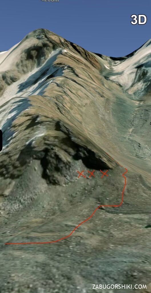 - От Черного камня по очертаниям троп на морену ледника Маяковского