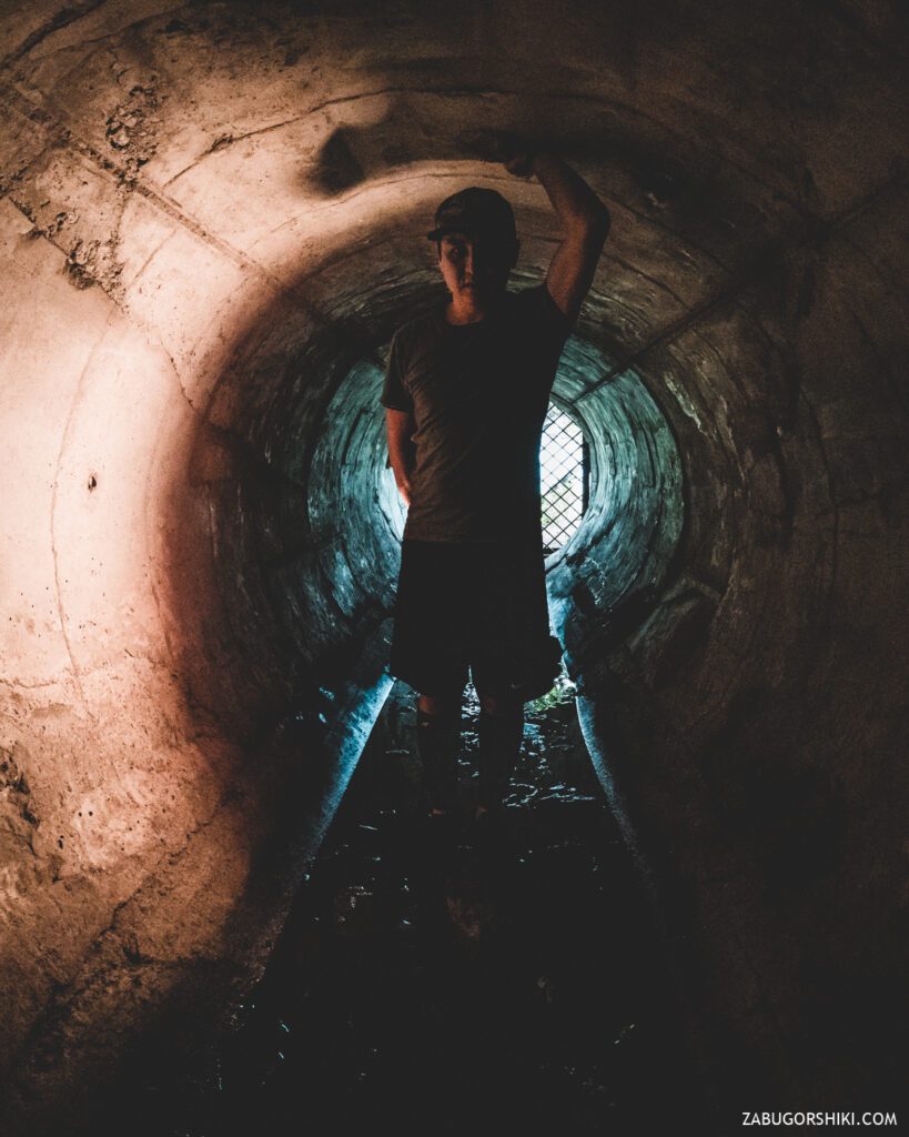 В километре от станции есть вход в штольню, конечно он закрыт, но разве нас это остановит?! Очень темно, сыро и прохладно. Не стали далеко заходить из-за вероятности сильно намочить ноги.