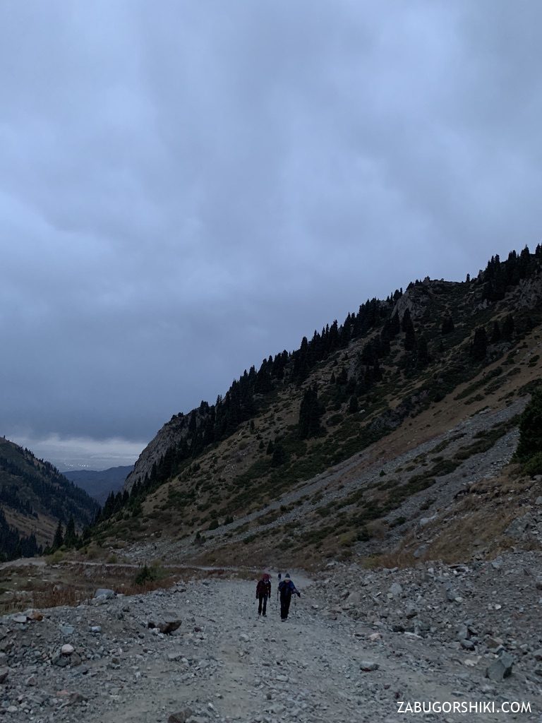 Подход к маршруту традиционно начинается либо с базы Туюк-Су или с курорта Шымбулак, что дальше. Мы начали свой путь от альпинистских вагонов, ниже альплагеря. В Туюк-Су у некоторых альпинистских клубов есть свои вагончики, в которых ребята могут переночевать, а также хранят снаряжения и отдыхают.