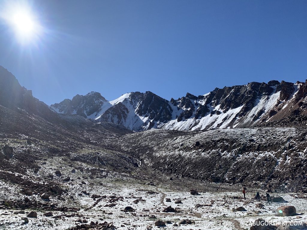 На Мынжылках обычно устраиваем небольшой отдых, пьем воду/чай, утепляемся или наоборот снимаем лишнюю одежду перед подъемом дальше. https://zabugorshiki.com/mynzhylki/ — здесь подробно описан весь подъем до Мынжылков.