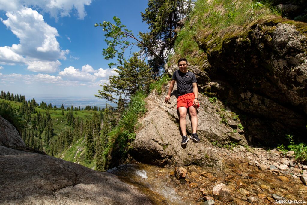 Отправились вверх по тропе и начали искать спуск к водопаду. Столько раз ходил на Кок-Жайляу, но на водопаде еще не был!