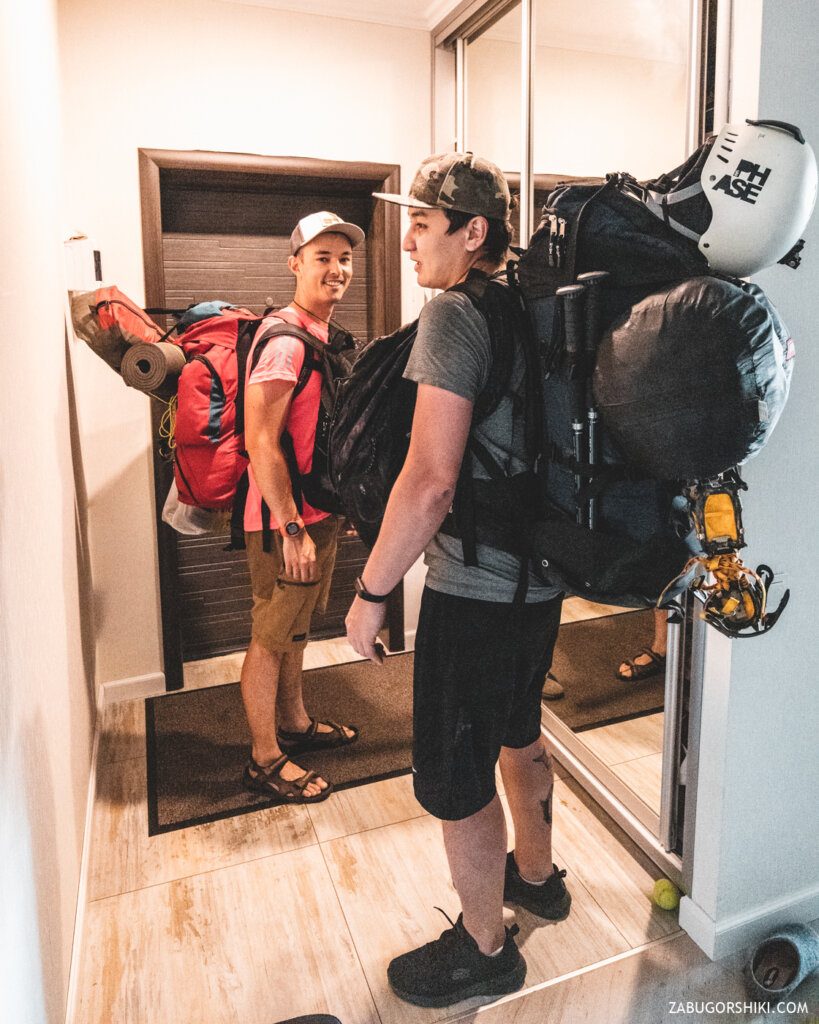 Понятное дело, что в свой обычный рюкзак я не влезу. Да и большой уже не кажется таким уж вместительным. Пораскинув мозгами логически, до меня дошла мысля брать оба. Так как мы идём с акклиматизацией, то на само восхождение я возьму мелкий чемодан, а большой будет охранять палатку.