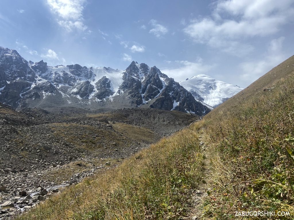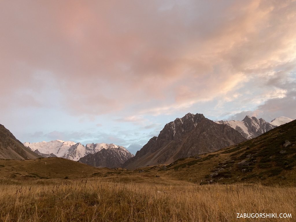 Большая Алматинская кругосветка — это тот маршрут, который начинается с одного ущелья и заканчивается абсолютно в другом. Старт обычно с Талгарского перевала на высоте 3200 метров, а завершают у Большого Алматинского озера на высоте 3000 метров.