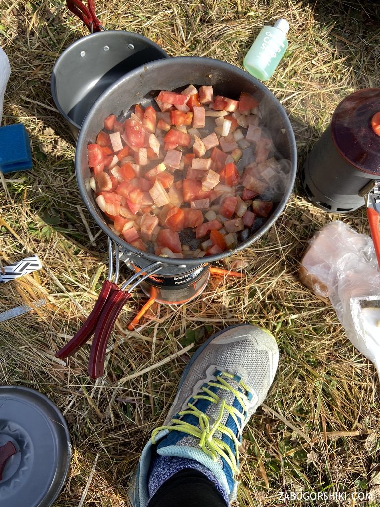 В целом можно было остаться ночевать на Солнечной поляне, но мы решили пройти еще немного дальше. До нашей стоянки осталось идти еще часа 2.