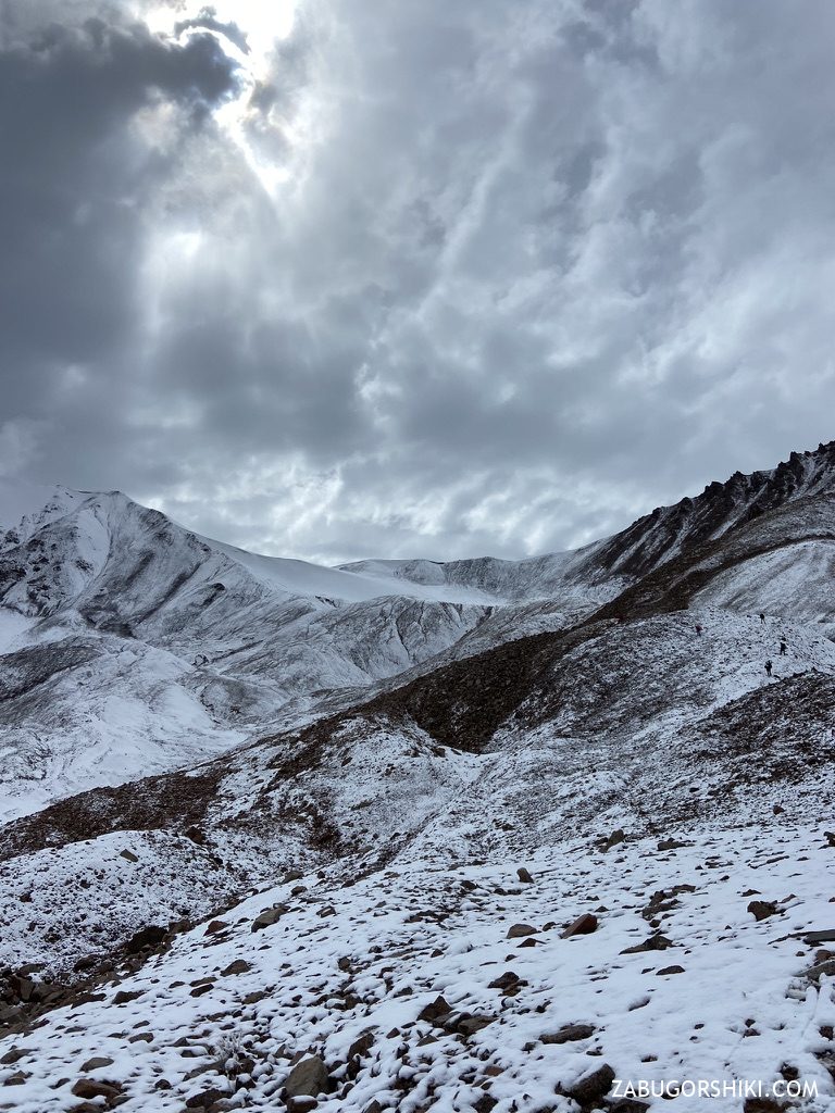 До определенной части маршрут на перевал несложный и плавный, но постепенно набор высоты начинает давать о себе знать — ведь сама высота перевала составляет 4039 метров (3981 м), а ночевали мы на 2900.
