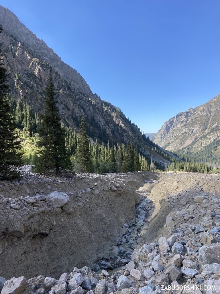 Конечно же это все зависит от весны, чем она будет насыщеннее на осадки, тем больше вероятности намучиться в начале лета проходя через глубокий мокрый снег, а подъем на перевал итак довольно изматывающее занятие. Весна этого года (2025) наоборот была весьма скупа на осадки и очень теплая и снег в горах растаял довольно рано. Также внимательно следите за состоянием воды в реках. Не так давно, 2021 и 2023 годах, в Левом Талгаре был сель, который изрядно расширил русло реки. Так что с сильной жарой в городе тоже стоит быть осторожнее и узнавать состояние тропы у тех, кто недавно ходил по маршруту.