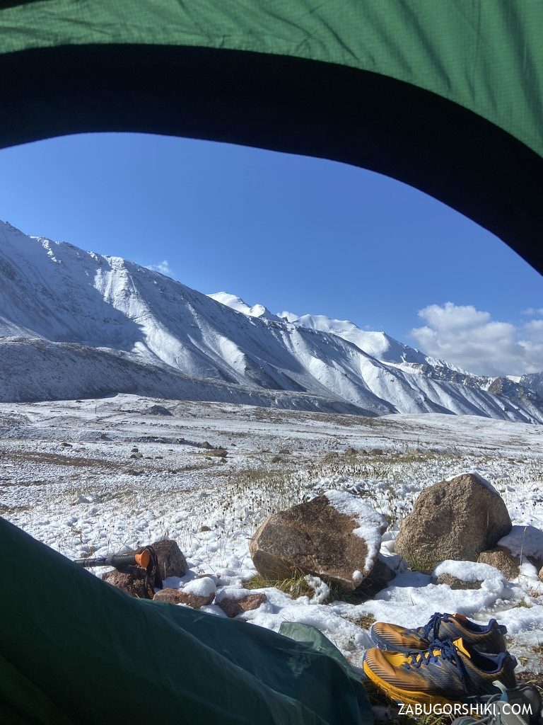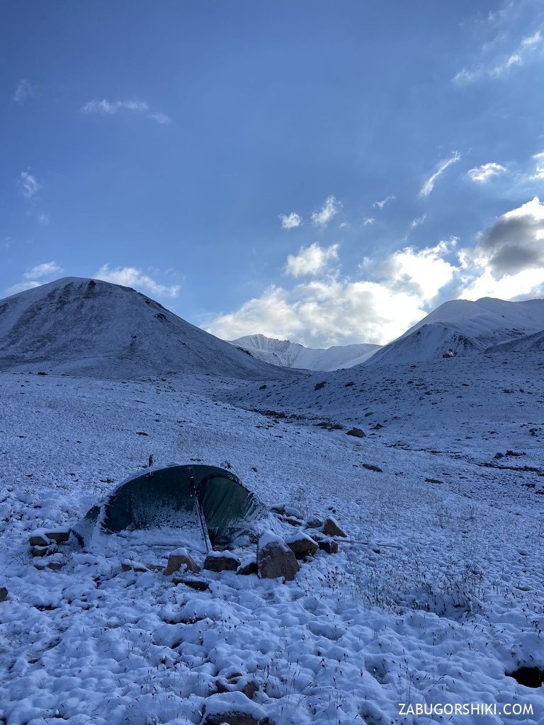 Утро следующего заключительного дня началось рано, в 7:30 утра. На наше удивление, в палатке мы не замерзли, и несмотря на тонкий снежный покров утром, увидеть первый снег 30 августа было весьма необычно.