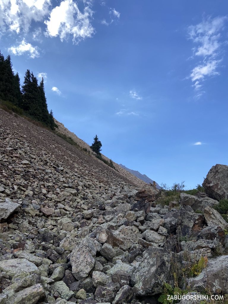 Проходим еще немного по тропе — будет одна короткая не очень приятная часть маршрута, которую мы проходим по камням, но там будут видны туры. Следуйте по ним минут 15-20, а дальше снова начинается выполаживание.