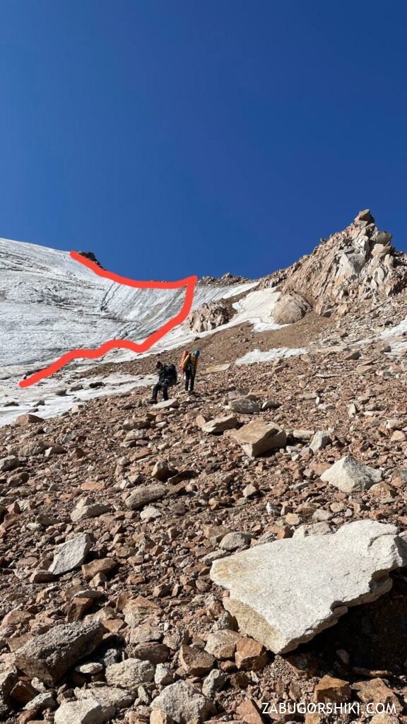 После этого инцидента мы стали двигаться быстрее. Начался фирн, и идти стало легче. Манило выйти направо, но это было бы ошибкой – там ужасная сыпуха, под которой лед.