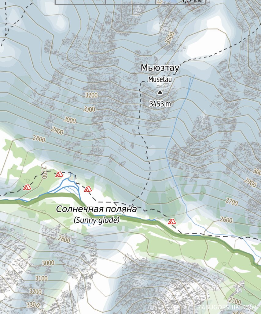 Особенность этой вершины в том, что на карте есть лишь условная тропа, ведущая к ней от Солнечной поляны, но на местности её практически нет. Будучи альпинистом, я не мог устоять перед соблазном взойти на эту малоизвестную вершину и решил отправиться туда в радиальный выход.