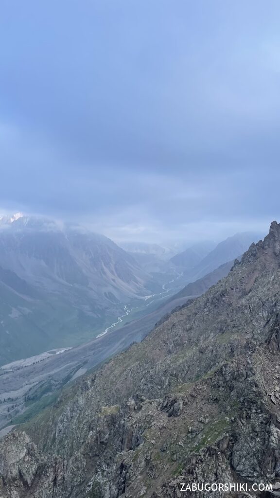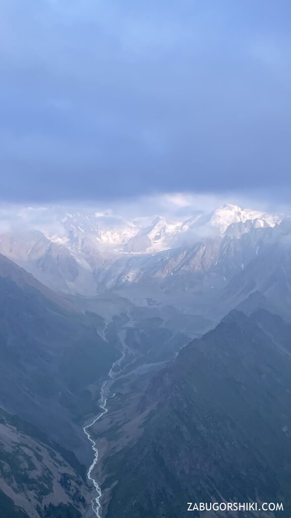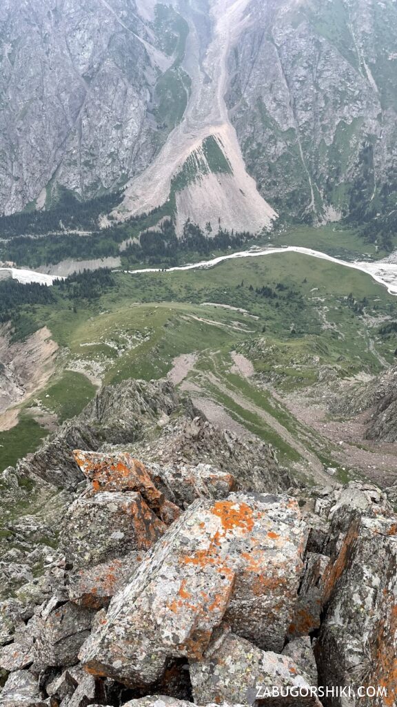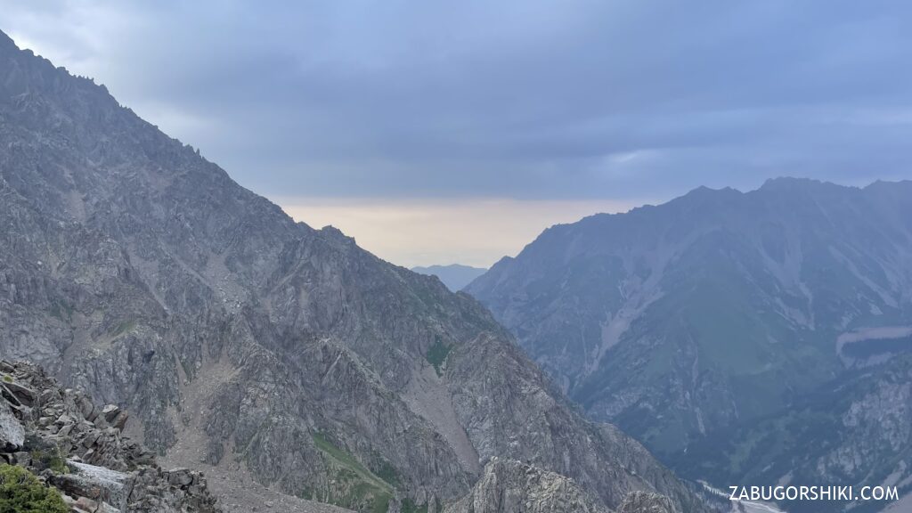 Это место было поистине волшебным: одновременно тёплым и холодным. Невероятный вид на ущелье УлькенМынжылкы не давал покоя. Обрывы в сторону Левого Талгара и в сторону селевого ущелья захватывали дух. С вершины можно было увидеть:
