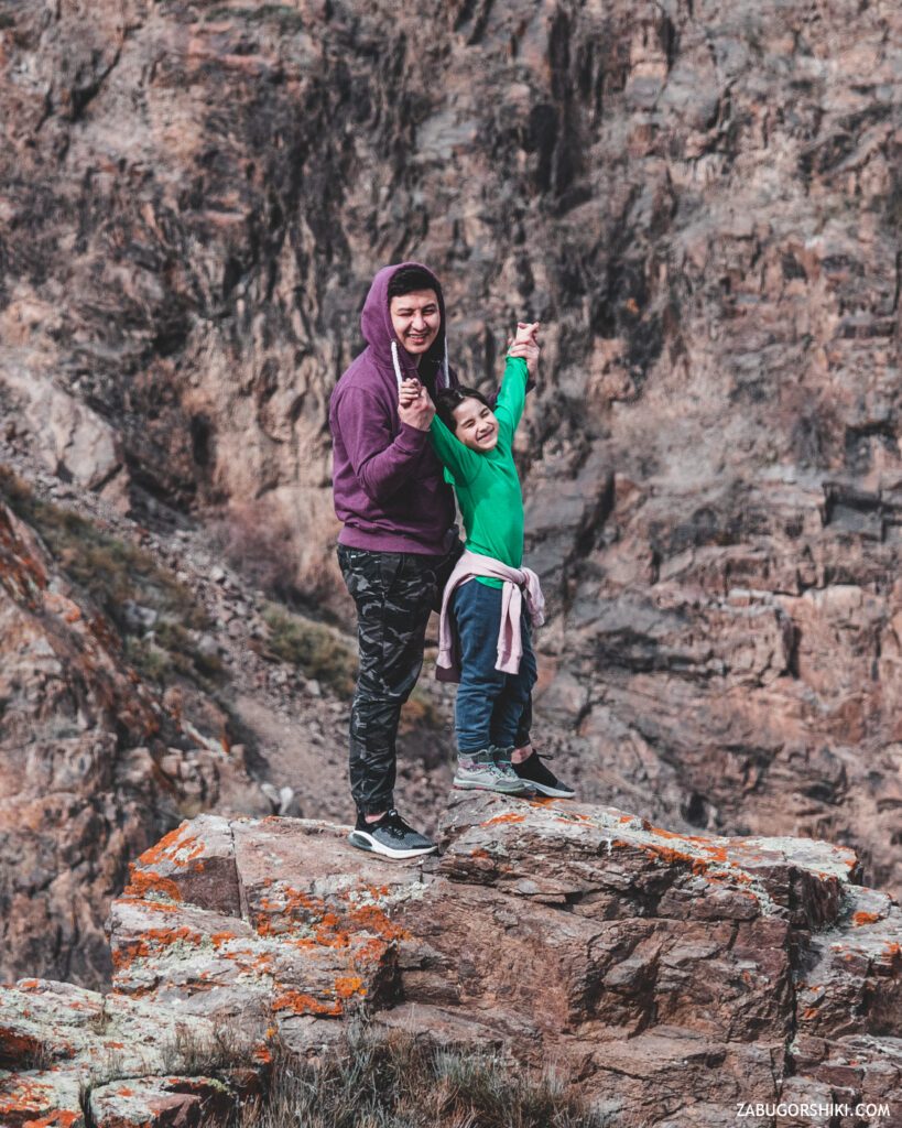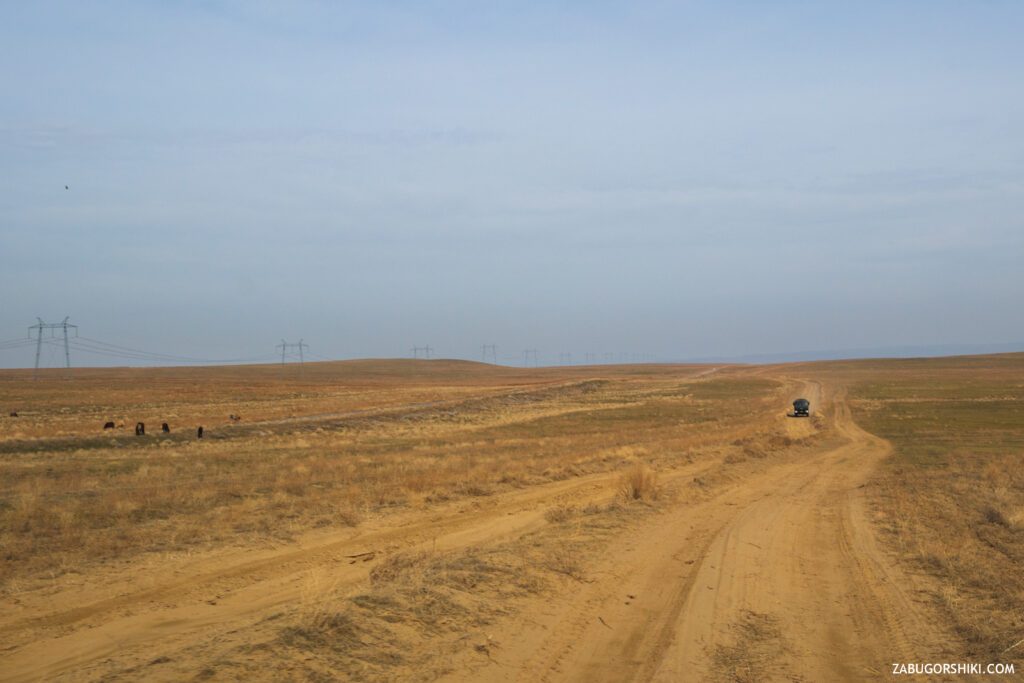 Доехали до указателя «Город кочевников» и теперь это точно наш поворот. Дорога окончательно перестала существовать. Местами спуск напоминал «черную трассу» и приходилось выходить из машины для своей же безопасности.