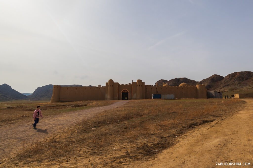Проехав немного вверх вдоль течения реки мы и прибываем к сегодняшней цели. Город кочевников — крепость в стиле средневековых номадов, которую построили современники для фильма «Кочевник». В последствии в этом месте было снято множество творческого материала.