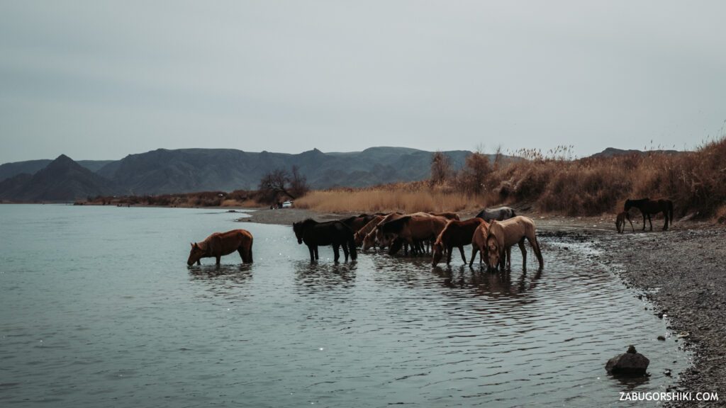 Табун красивых почти арабских скакунов пробивается сквозь толпы отдыхающих, которые заполонили побережье своими машинами, на водопой. мы же встали ниже сего «чаепития» и пристально наблюдали со стороны за резвыми. Вдоволь, а может и в спешке напившись они поспешили умчать галопом по Европам и скрылись в клубах пыли от топота копыт за дальними горами.