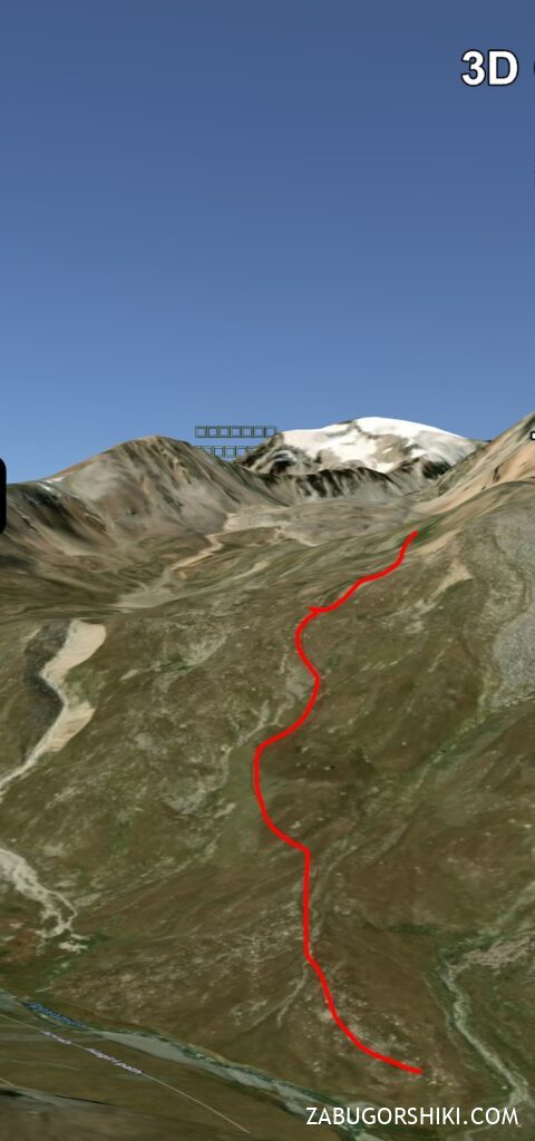 Рано утром наша команда, настроенная решительно на восхождение, вышла в путь. Мы двигались по противоположному ущелью, которое ведет на перевал Радуга перед пиком Гигант. Обычно через это ущелье альпинисты переходят в Каргалинское ущелье и далее идут по маршруту «кругосветки». Но у нас была другая цель.