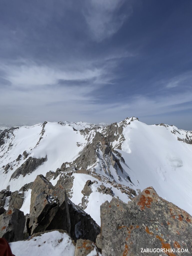 Преодолев технический участок, нам осталось пройти по относительно безопасному гребню, с которым мы справились без особых проблем.