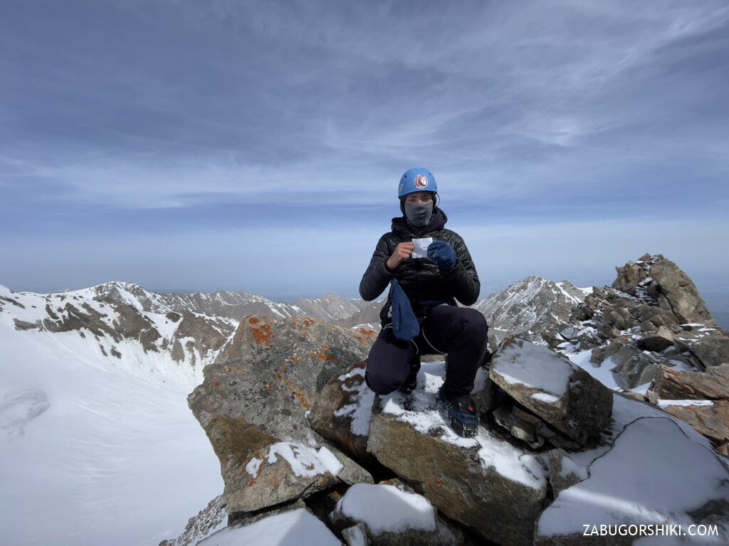 На вершине я потерял гермомешочек от своей пуховки – вершина позволила нам взойти на неё и постоять, но взяла в обмен этот мешочек.