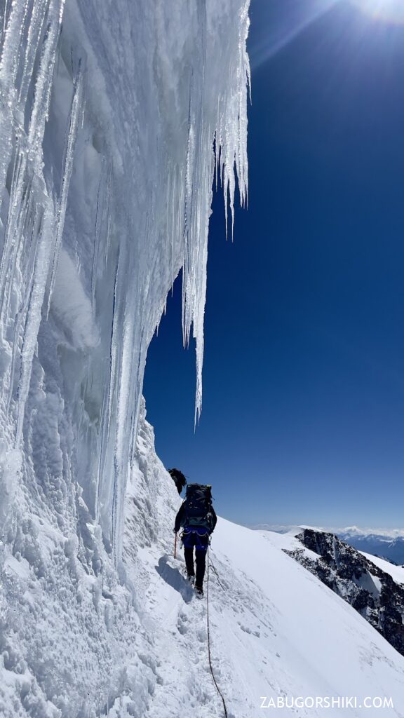 Сосульки длиной до 6 метров над нашими головами не давали нам покоя! Прошли достаточно быстро! Фух! Вышли на предвершинное плато!