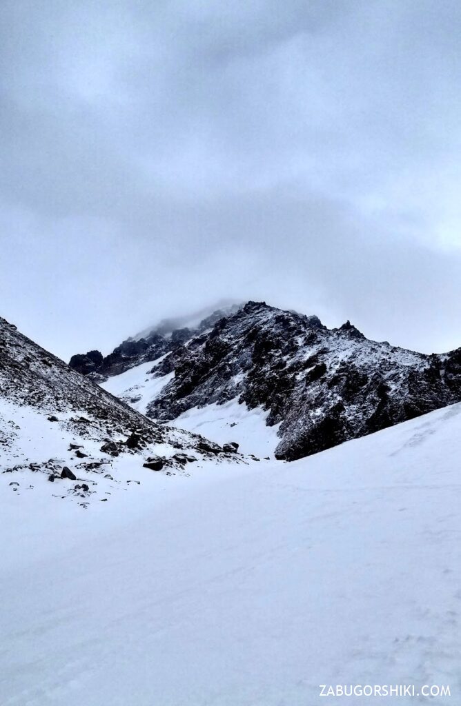Все верха резко затянуло, пошли мелкие хлопья. Думал: сейчас точно развернусь вниз. Но примерно через двадцать минут туман осел, осадки закончились, и выдохнул. Фух, пронесло. Это же всё-таки Заилийский Алатау. Если погода дала шанс, бери его пока не передумала.