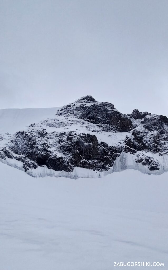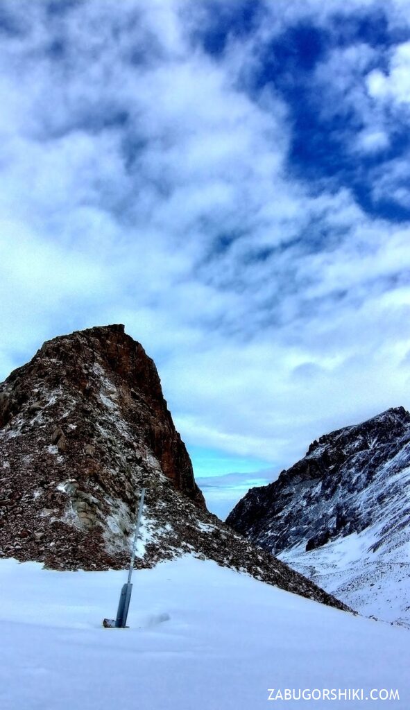 С Гренландского это значит скала или пик. Нунатак — это такой каменный остров посреди ледяного океана. Ледник Богдановича полностью его обнимает, создавая отличную защиту от ветра. Не зря там любят ночевать альпинисты.