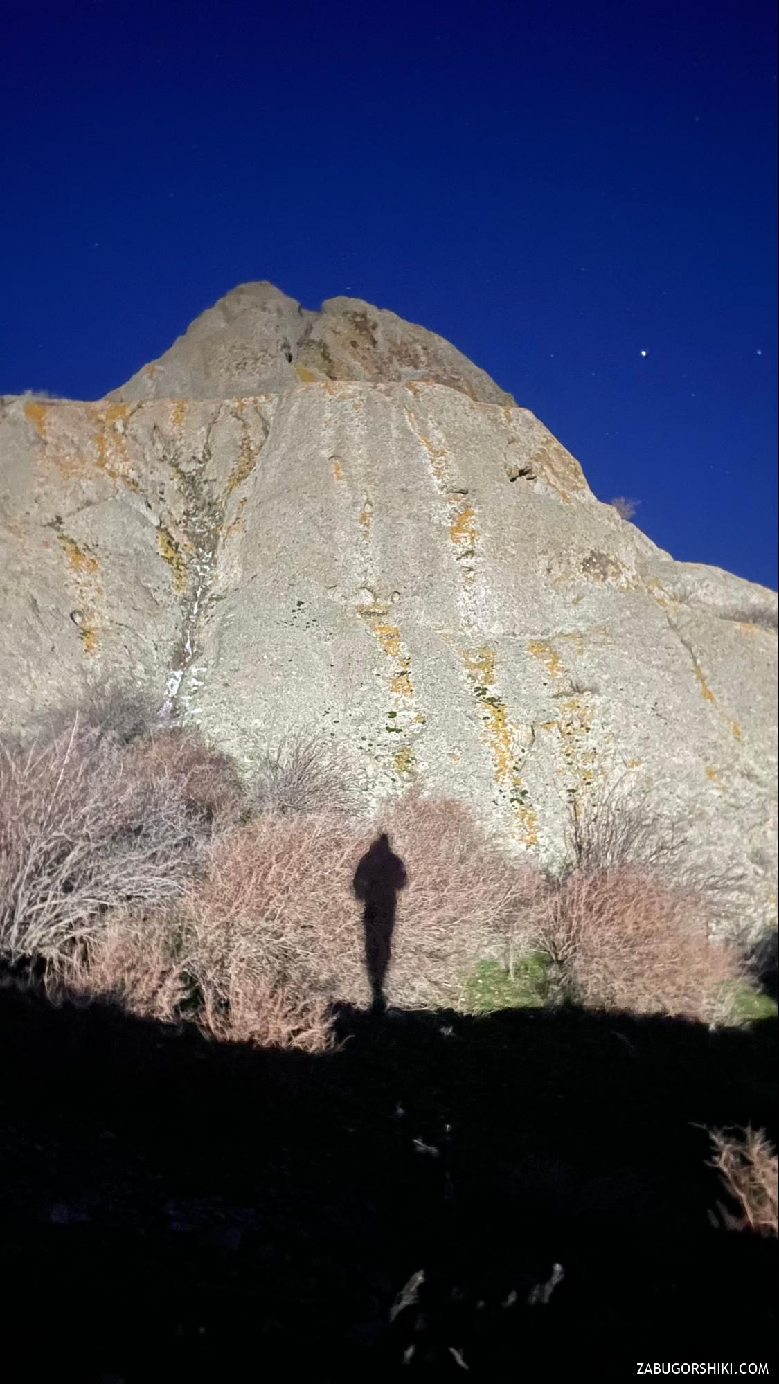 Вечером развели костёр, начались разговоры. Не моё это — я снова ушёл гулять, но уже по ночным скалам 🙂 Через некоторое время вернулся и лёг спать.
