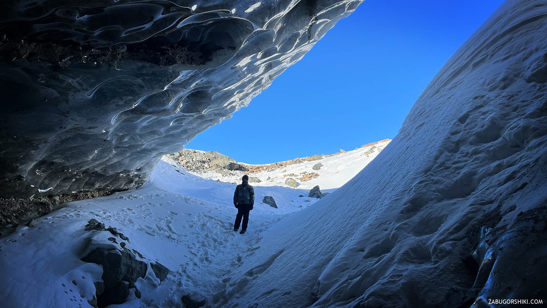 Грот ‘Дельфин’ — первая точка нашего ледяного приключения. 20 метров льда, игры света и теней. Своё имя он получил из-за входа, который раньше напоминал силуэт дельфина. Сейчас ледник изменил форму, но магия этого места осталась прежней…