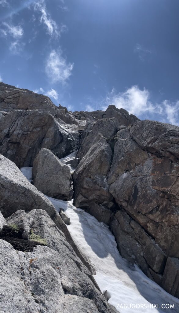 На пути меня ждал кулуар, который поначалу казался небольшим, но это только казалось. Целых 27 минут я шел в ускоренном темпе на перевал, и это было нелегко! Но в конце концов я вышел на перевал и направился в сторону вершины, которая находилась уже на севере.