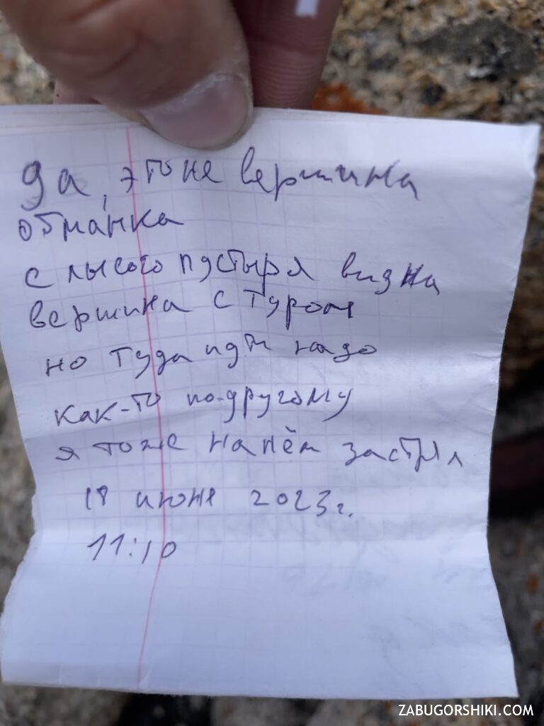 «Да, это не вершина, а обманка. С лысого пустыря видно вершину с туриком, но туда нужно идти как-то по-другому. Я тоже на ней застрял. 18 июня 2023 года, 11:10».