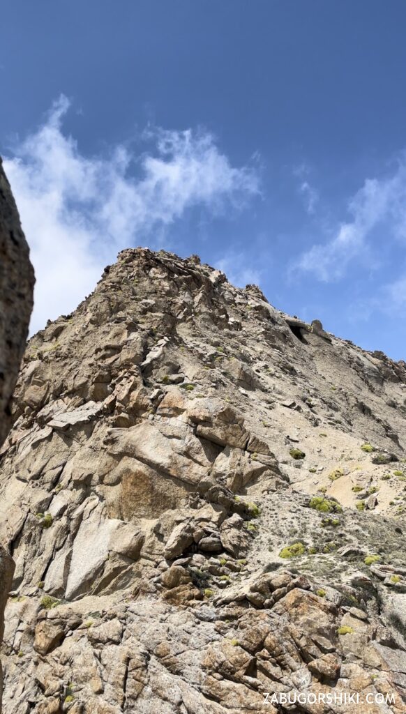 Эти плиты действительно гладкие как стекло — если они мокрые, то гарантированно не получится подняться, а если вы уже на вершине и у вас нет веревки, то можно просто соскользнуть. В таком случае есть два варианта: либо в ущелье Каргалинское, либо в ущелье Секретсай.
